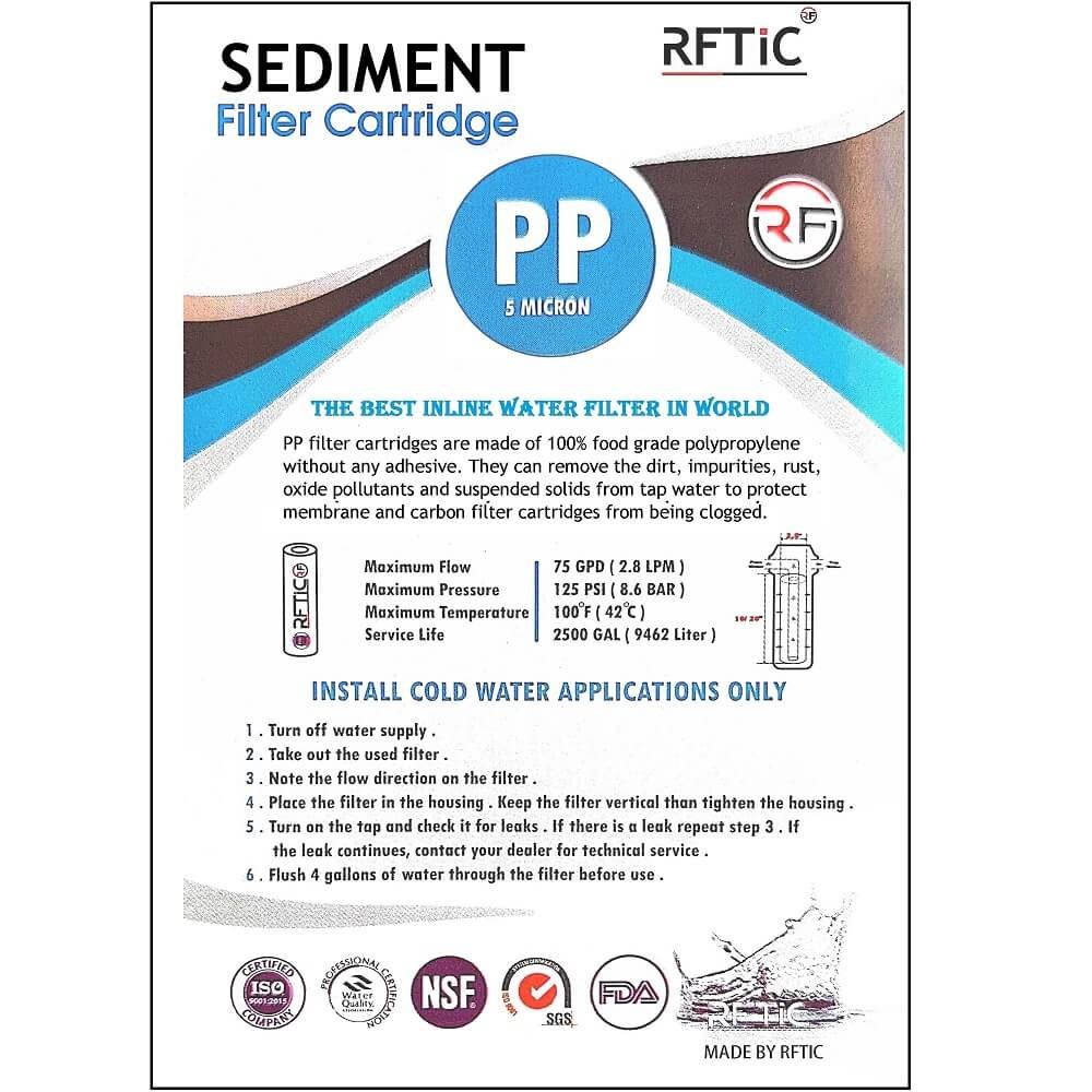 - خراطيش فلتر (بى بى 5 ميكرون ) مصنوعة من مادة البولي بروبيلين الآمنة غذائيًا بنسبة 100% بدون أي مادة متداخلة معها.