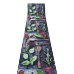رول موكيت سجاد للمطبخ خفيف الوزن عرض 80 سم مزين بادوات المطبخ لون غامق