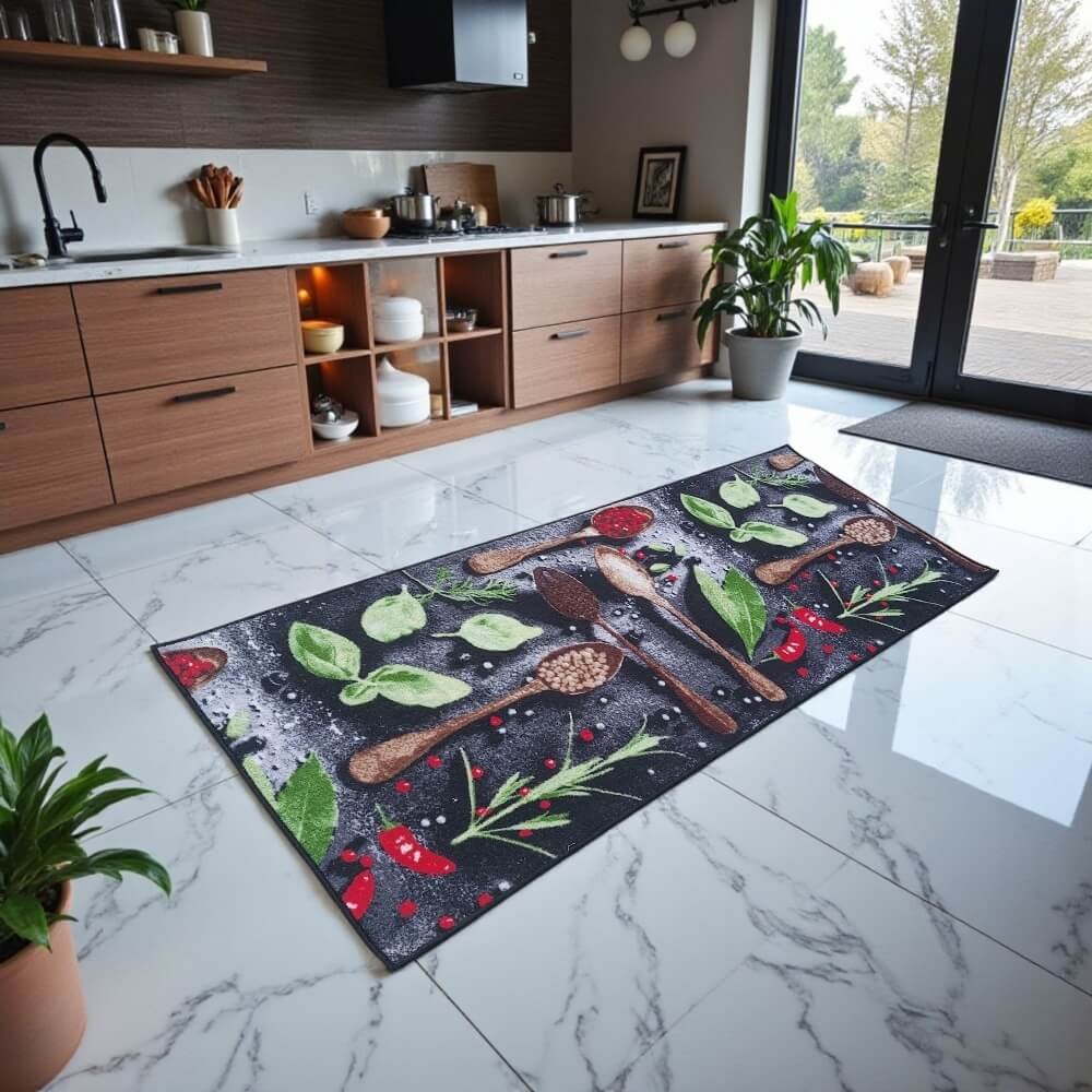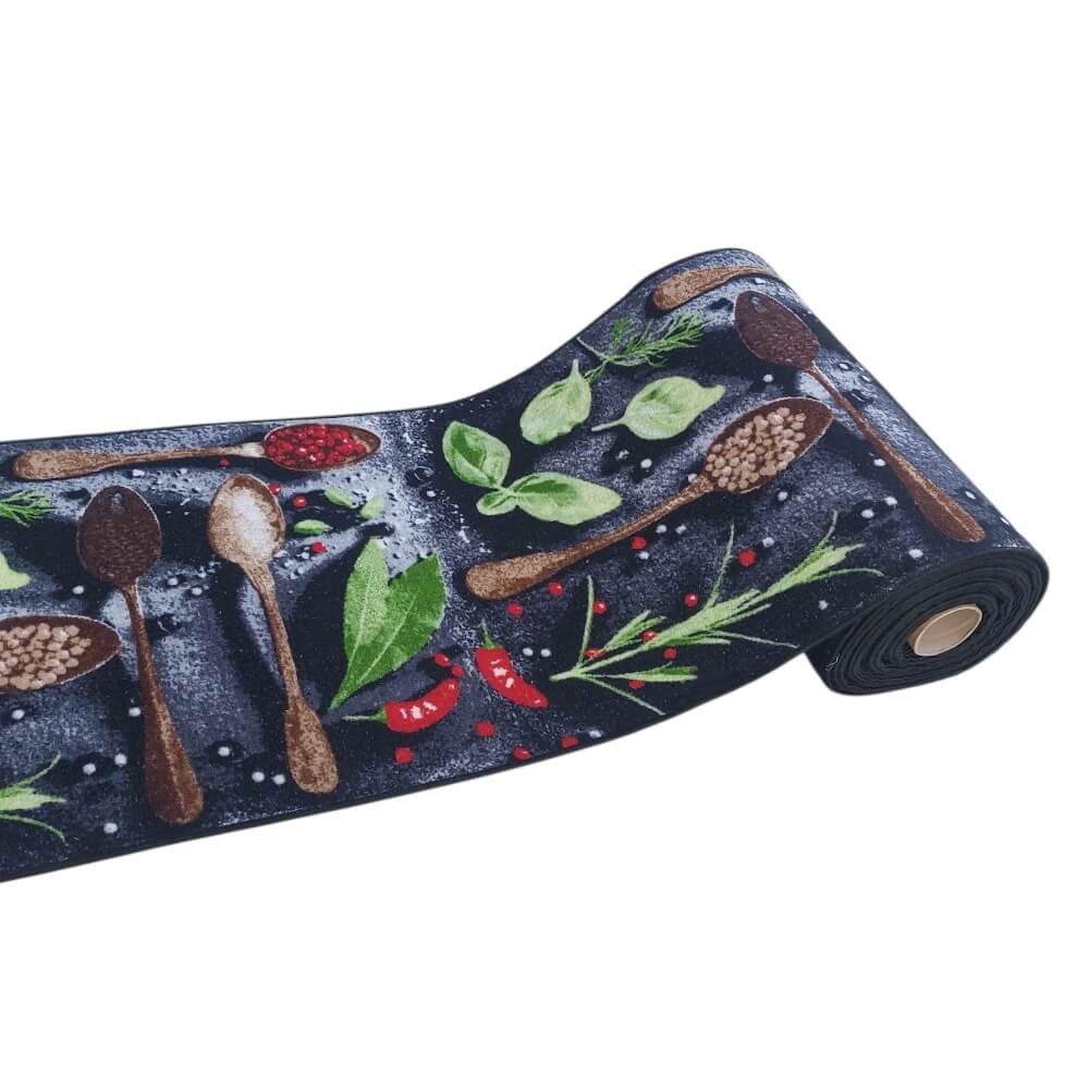 رول موكيت سجاد للمطبخ خفيف الوزن عرض 80 سم مزين بادوات المطبخ لون غامق